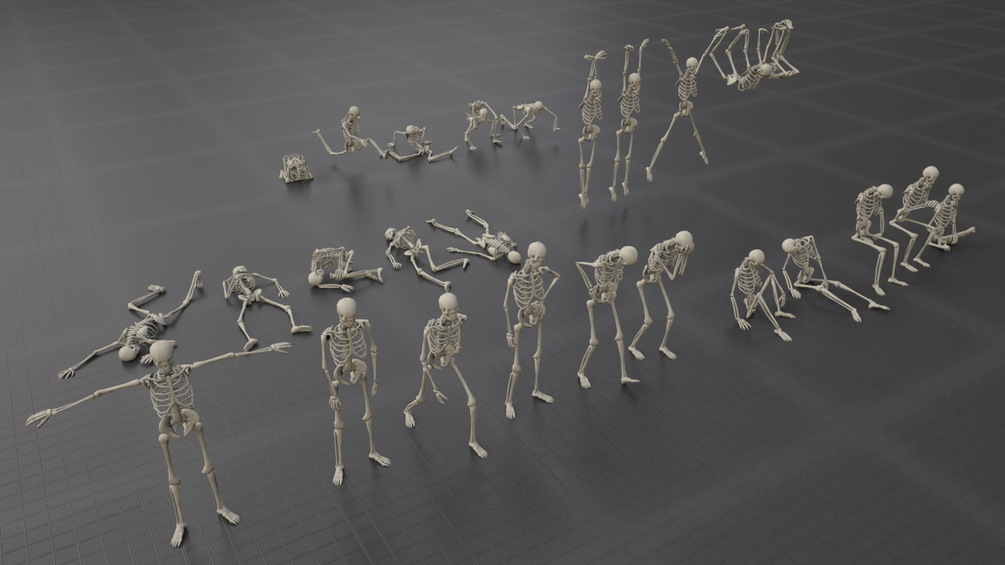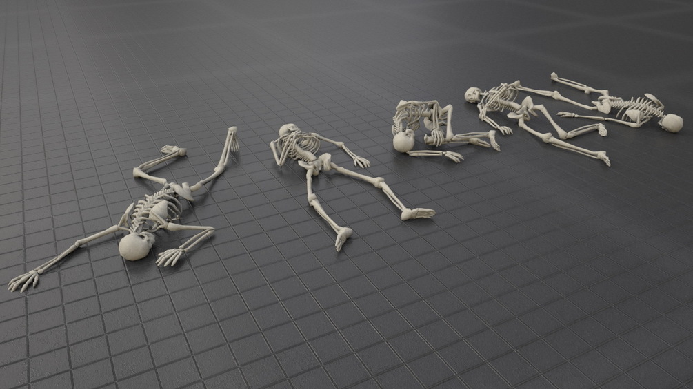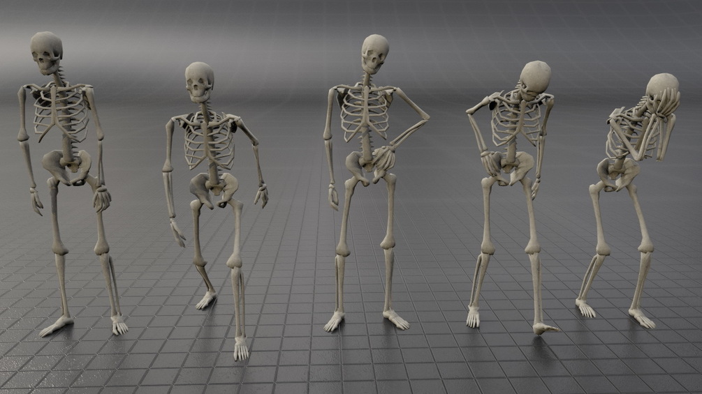 In this pack you will find 26 poses of a low poly skeleton. All individual poses packed together for a cheaper price than if bought separately. They are mainly built to be viewed from a medium to long range, but can hold up being looked on close up too if used sparsely and in a correct manner.